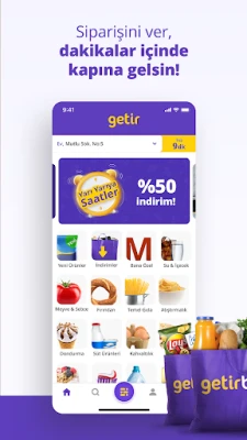 Getir, market alışverişi, yemek siparişi ve finansal işlemler için pratik çözümler sunar. Binlerce çeşit ürünle günlük ihtiyaçların dakikalar içinde kapında, üstelik taksi çağırma kolaylığıyla her an yanında.